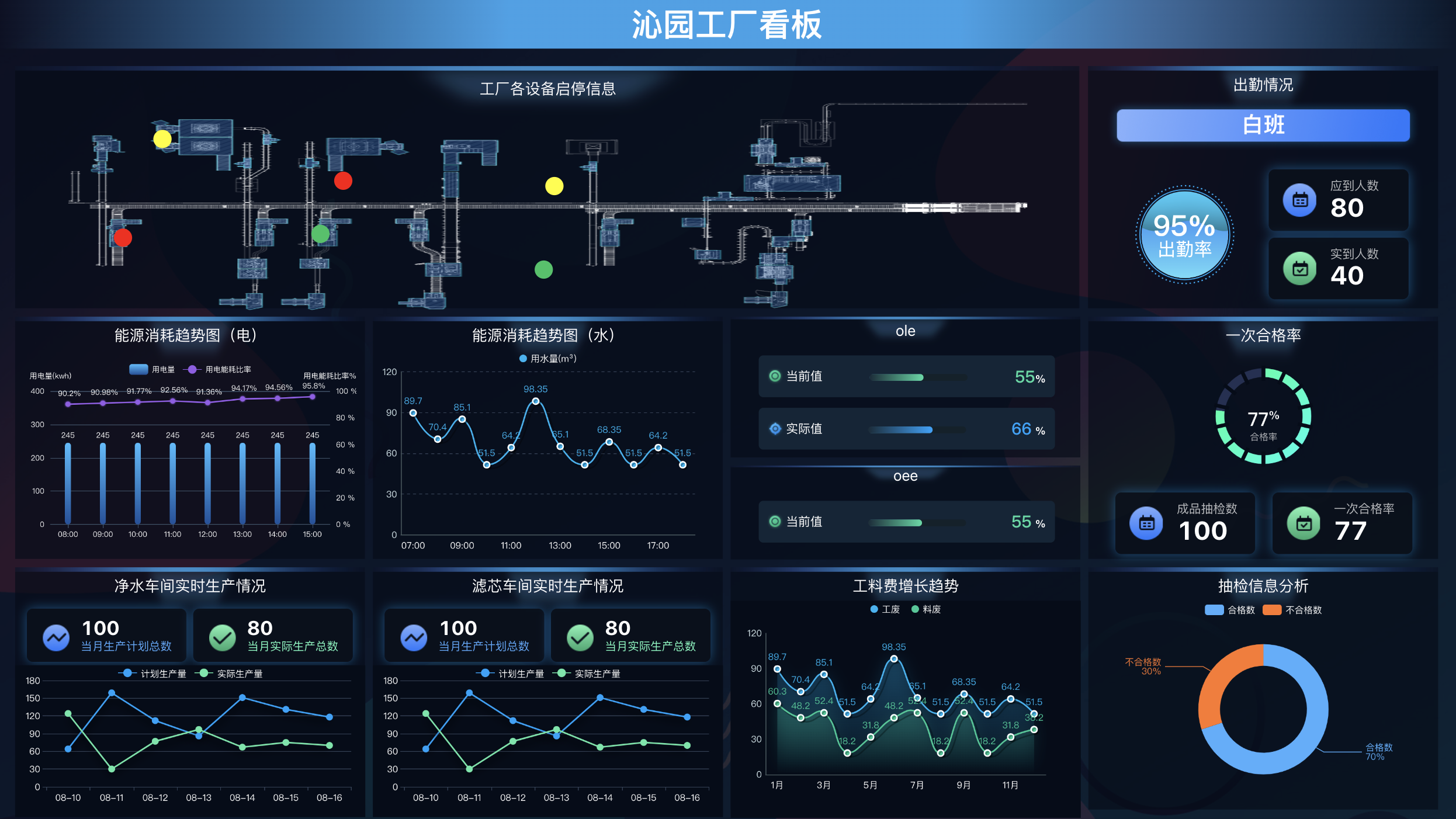 通过IOT将工厂的水、电、气能源数据进行采集,通过对能源数据,进行统计分析处理,以可视化的方式,展示工厂各个车间、产线的能源使用情况,为管理人员进行有效的统计分析,便于公司对当前形势做出相应的决策。